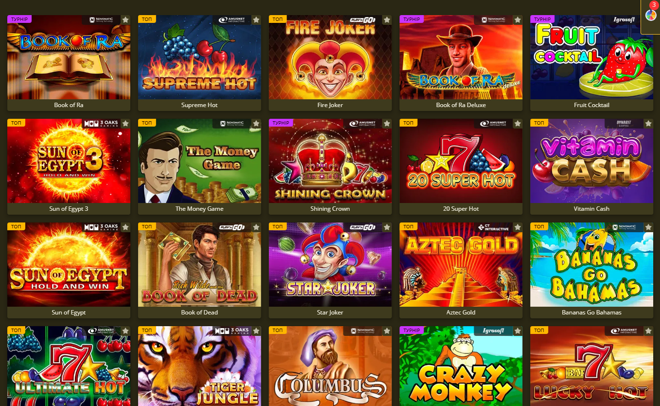 - Популярні провайдери вгорі списку - Pragmatic Play, Igrosoft, NetEnt, EGT, Booongo з кількістю ігор 100-200+